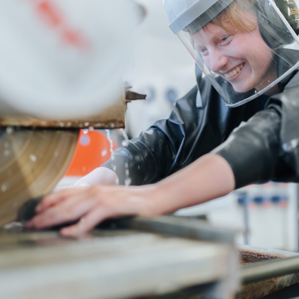 Our rock and thin section laboratory is equiped with a variety of saws, drilling, and polishing machines for the preparation of rock samples, confection of thin sections, and polished surfaces, that are used for further analyses.