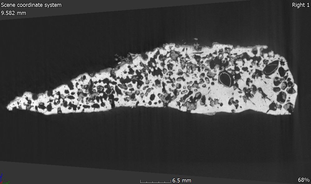 Bioerosion of organisms on other organisms or on inanimate substrates is widespread in both recent and fossil contexts. With the help of 3D volume data from CT scans, traces of bioerosion can be visualized and analyzed in a non-destructive manner. In this way, it was possible to identify the various groups that had hollowed out a limestone rock from the Mediterranean Sea. In the 2D section, for example, the shells of a boring mussel can still be seen in some cavities, which, along with many specimens of a boring sponge, caused the perforated structure of the once compact limestone.
