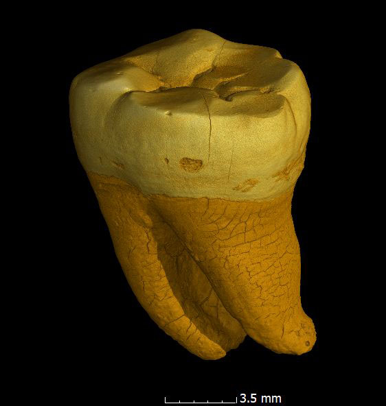 Our collection includes the wisdom tooth of the oldest human fossil found in Bavaria. Examinations of surrounding stalactites revealed an age of more than 250,000 years. At that time, representatives of our species were probably already living in the region, but Neanderthals were also widespread. Morphological measurements are necessary to determine which human species this tooth belongs to (the investigations are still ongoing).