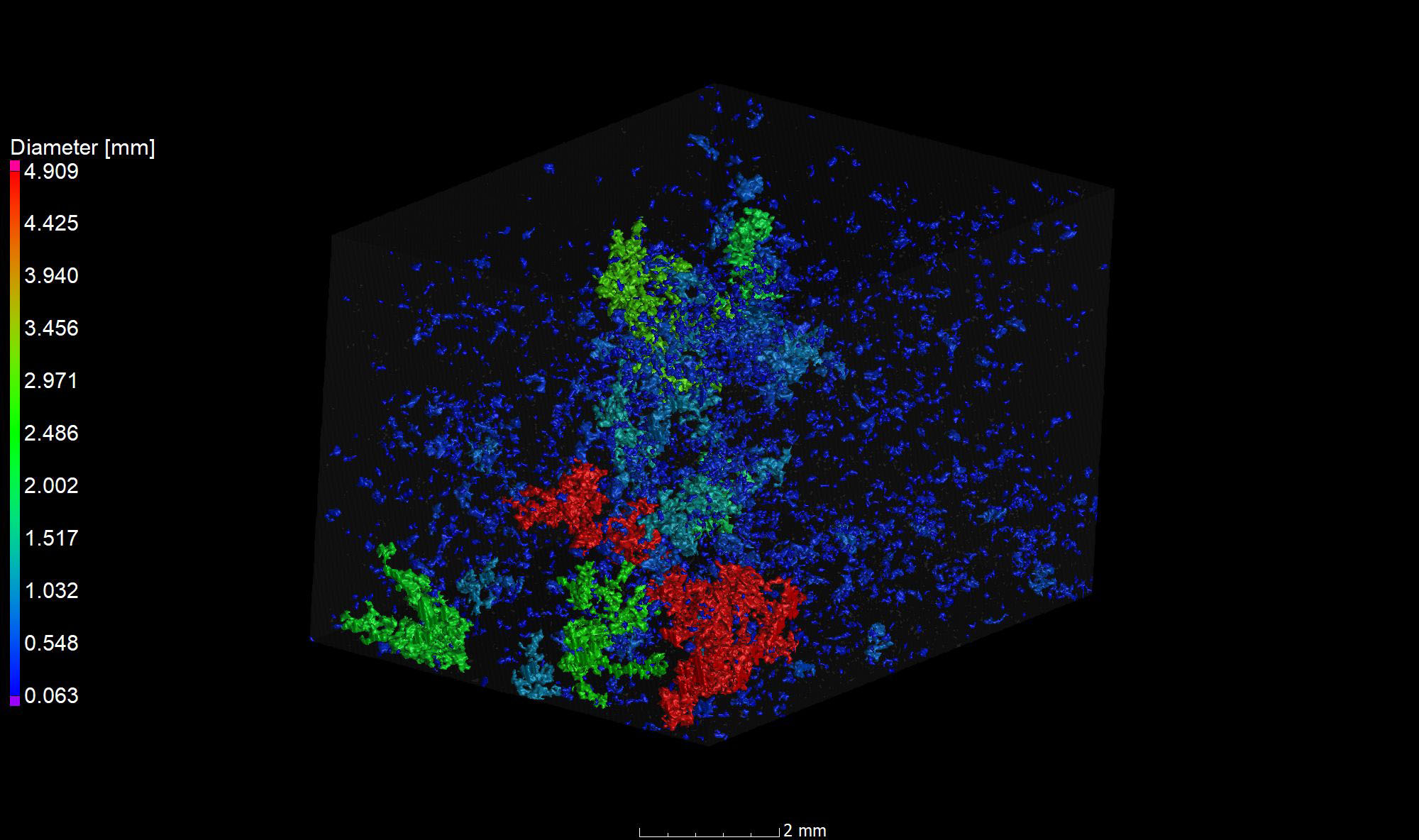 Sedimentologists can use CT data to visualize and measure the pore space in rocks. Pores and pore connections provide insights into the transport of liquids (or gases), such as groundwater or petroleum.