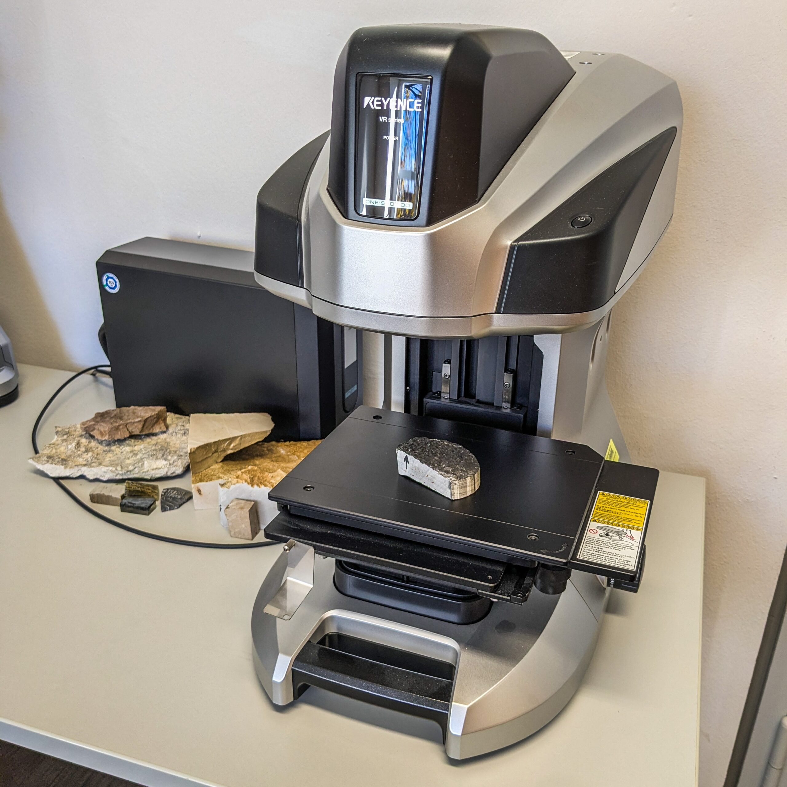 We use a Keyence VHX-7000 digital microscope with a magnification of x20 – x2400 for taking high-resolution images of thin sections and rock samples.