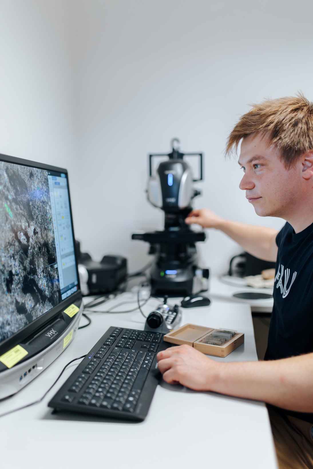 Our rock and thin section laboratory is equiped with a variety of saws, drilling, and polishing machines for the preparation of rock samples, confection of thin sections, and polished surfaces, that are used for further analyses.