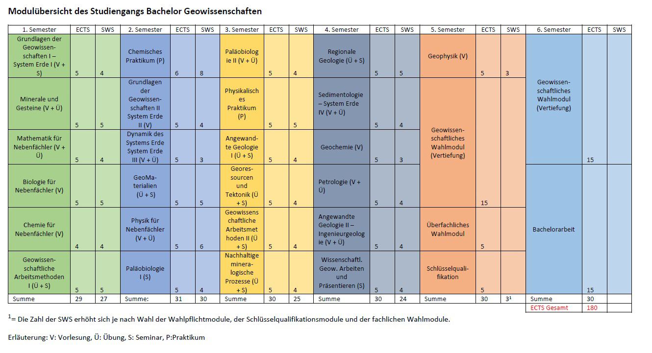 The module overview lists the individual modules of the Bachelor’s program at the GeoZentrum. You will complete each module with an examination.